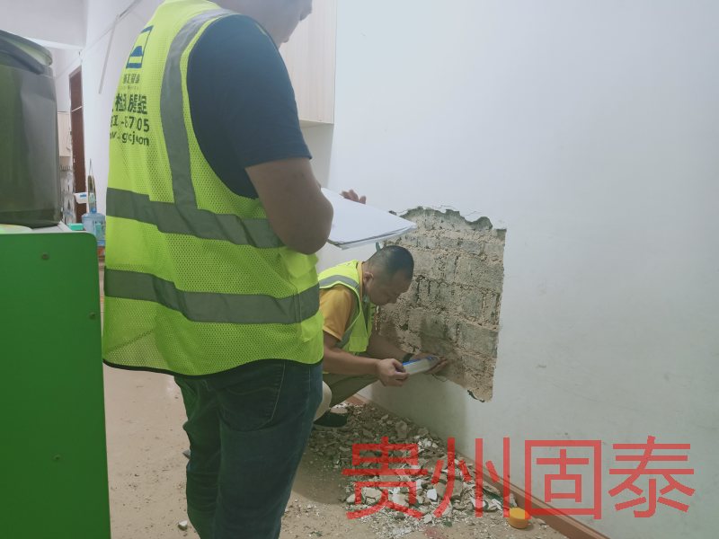 16、对涉及到的检测部位敲打后出现的梁、柱、墙面等的损坏进行全面修复,恢复原样。